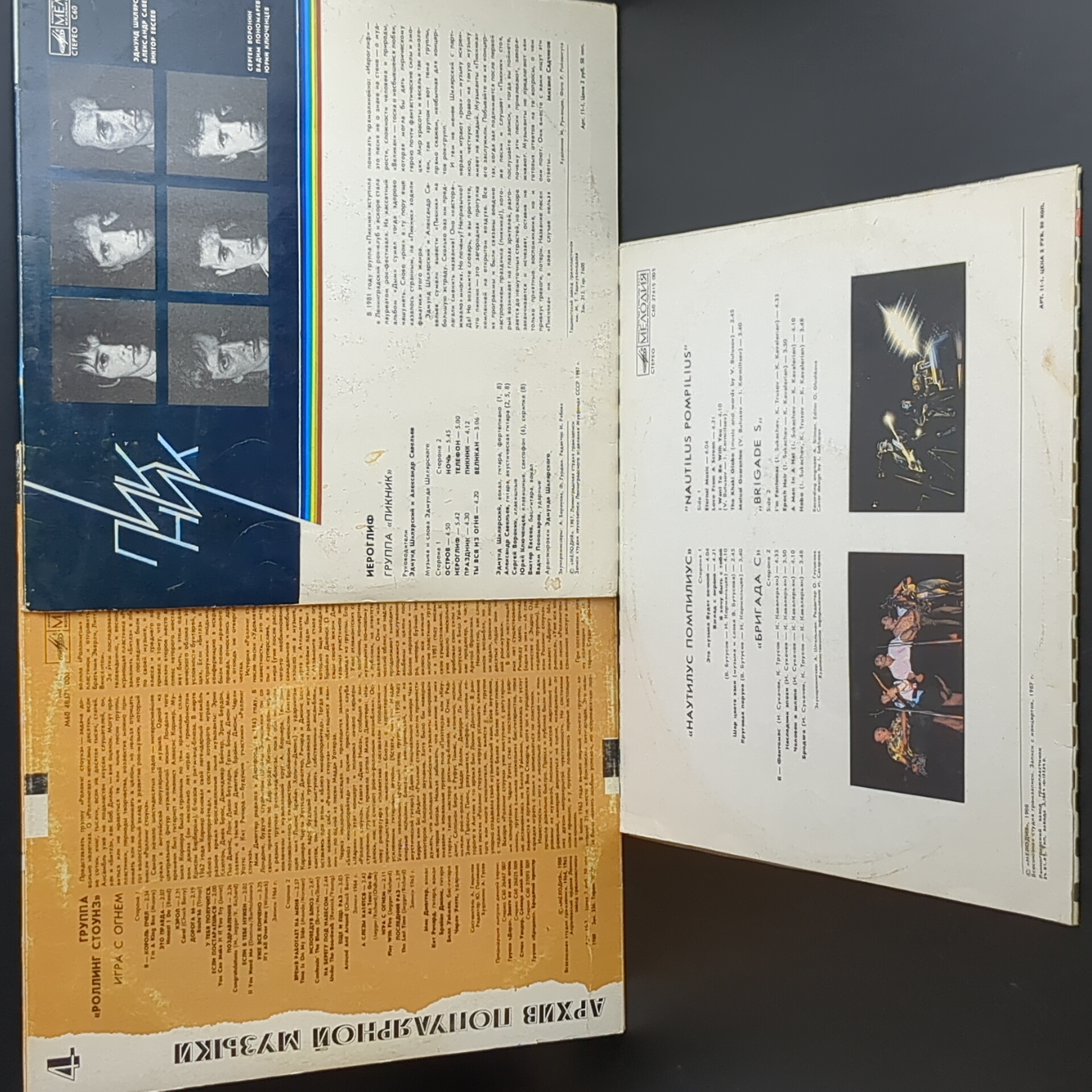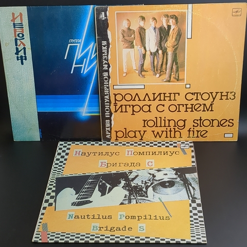 LP Набор из 3 пластинок Роллинг Стоунз, Пикник, Наутилиус. 3 Виниловые пластинки 12 дюймов. Мелодия СССР . LP Rolling Stones - Play with fire / Роллинг Стоунз - Игра с огнём. LP Зарубежный рок / Пикник - Иероглиф. Русский рок / Наутилус Помпилиус / Nautilius Pompilius. Бригада С. Конверт VG / Диски VG