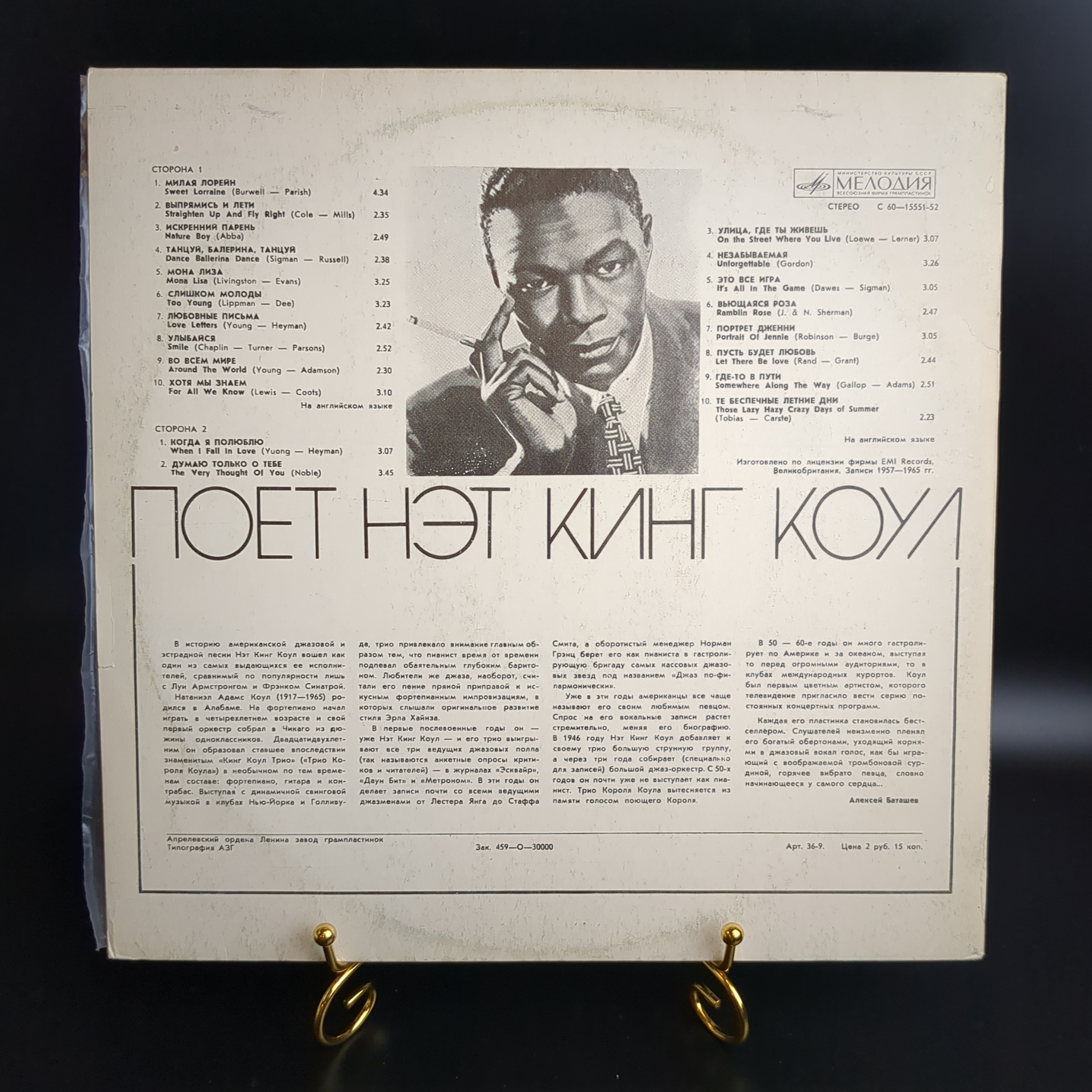 LP Нэт Кинг Коул – Поет Нэт Кинг Коул. Виниловая пластинка 12 дюймов. Мелодия СССР. Конверт EX / Диск NM