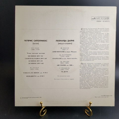 LP П. Сиполниекс и Л. Дайне - Органная музыка. Виниловая пластинка 12 дюймов. Мелодия СССР 1980 год. Классческая музыка на виниле. Конверт NM / Диск Mint