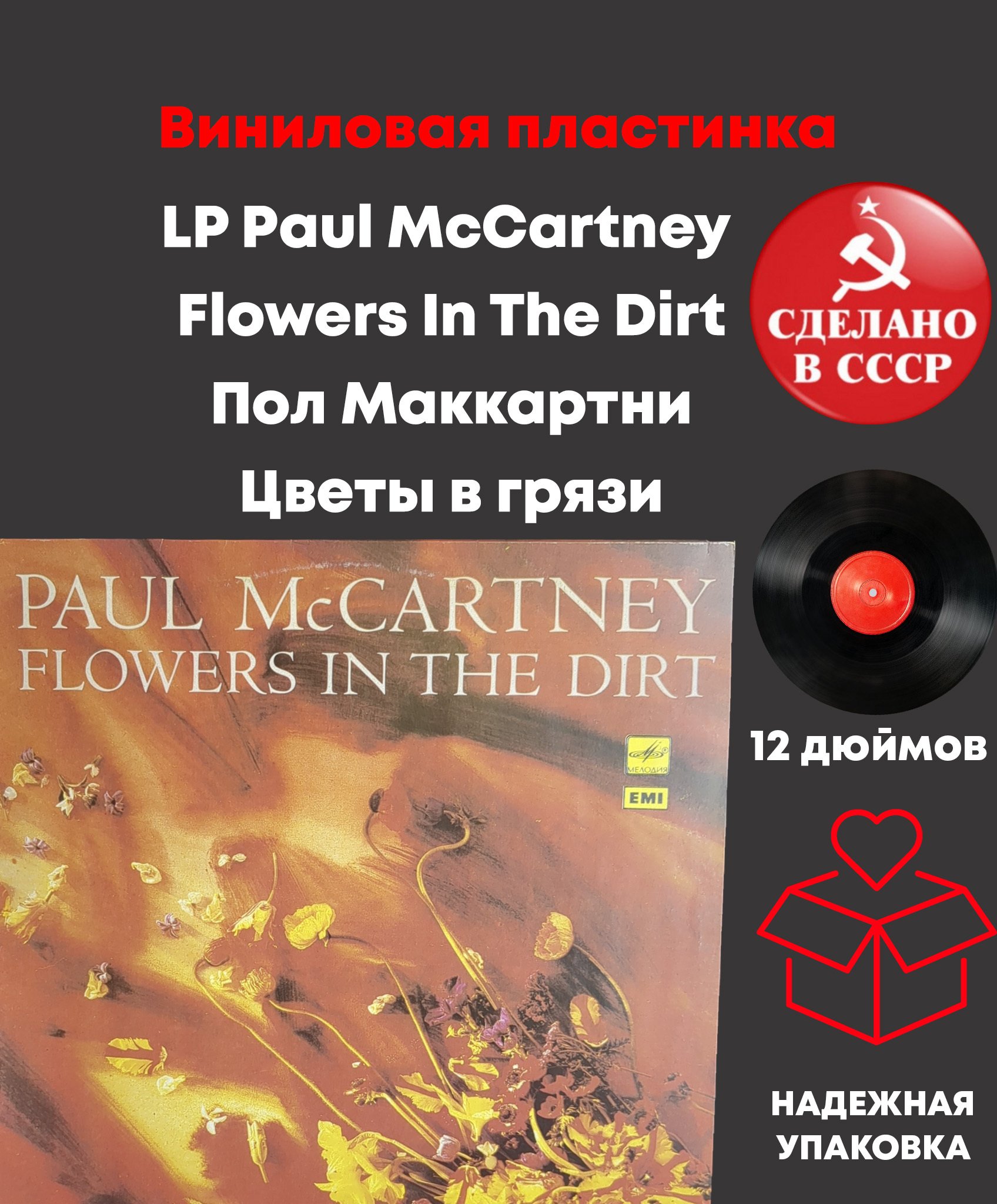 LP Paul McCartney - Flowers In The Dirt / Пол Маккартни - Цветы в грязи. Рок / рок-н-ролл. Виниловая пластинка 12 дюймов. Мелодия СССР 1989 год. Лицензия Англия. Конверт EX / Диск EX