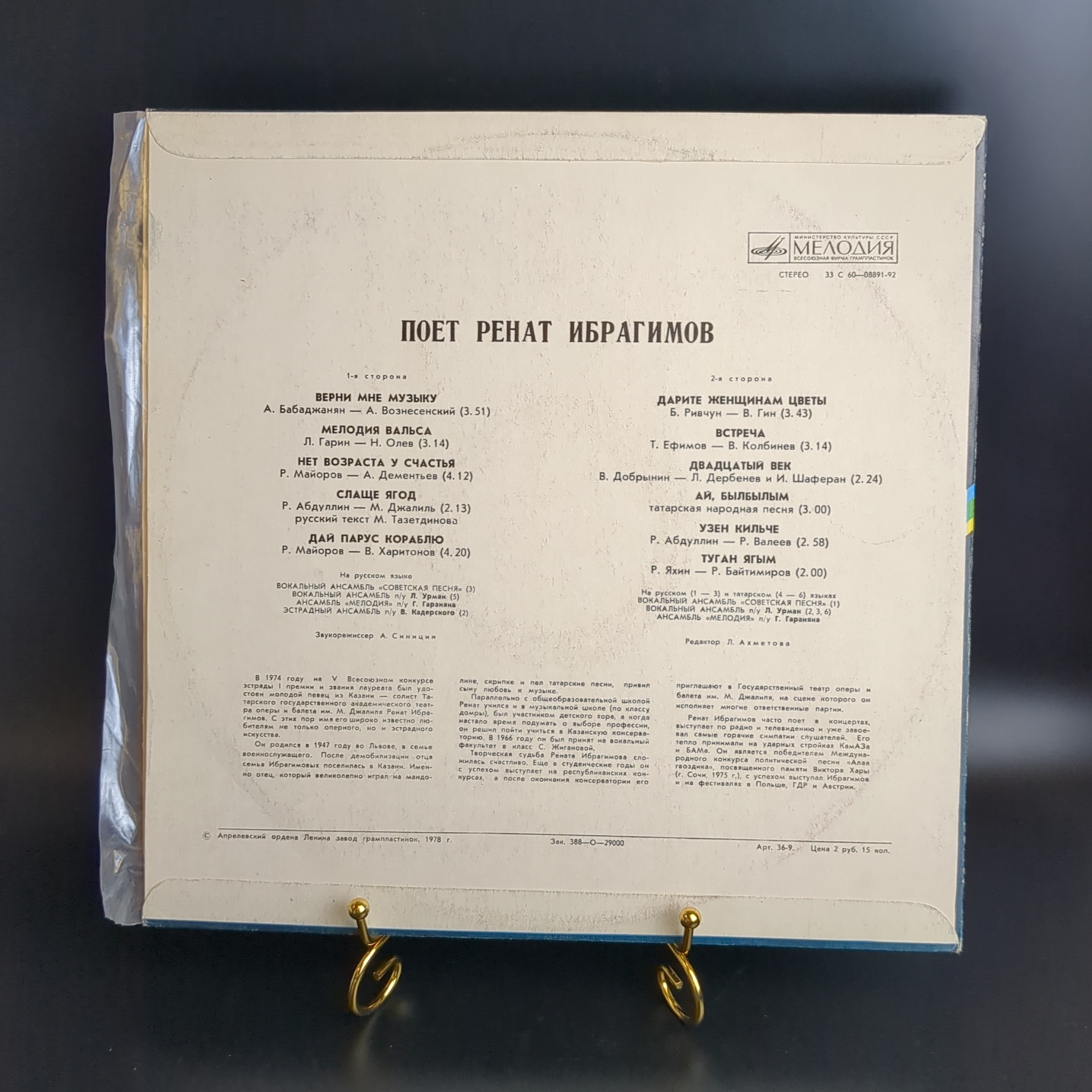 LP Ренат Ибрагимов - Верни мне музыку. Дарите женщинам цветы. Виниловая пластинка 12 дюймов. Мелодия СССР 1978 год.
