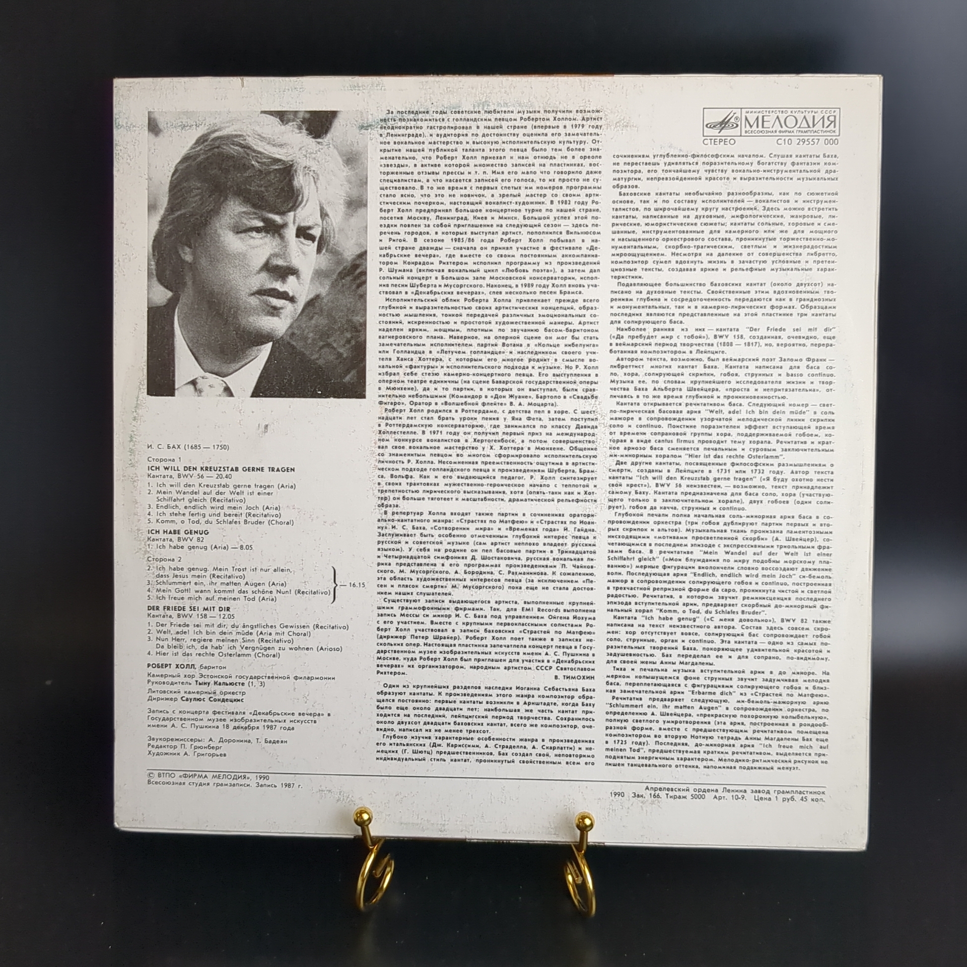 LP Роберт Холл баритон На концертах выдающихся мастеров виниловая пластинка 12 дюймов Камерный хор эстонской филармонии, И.С. Бах кантанты BWV 56,82,158, классика, винтаж СССР Мелодия 1990 год. Классическая музыка на виниле. Конверт: EX Диск: EX