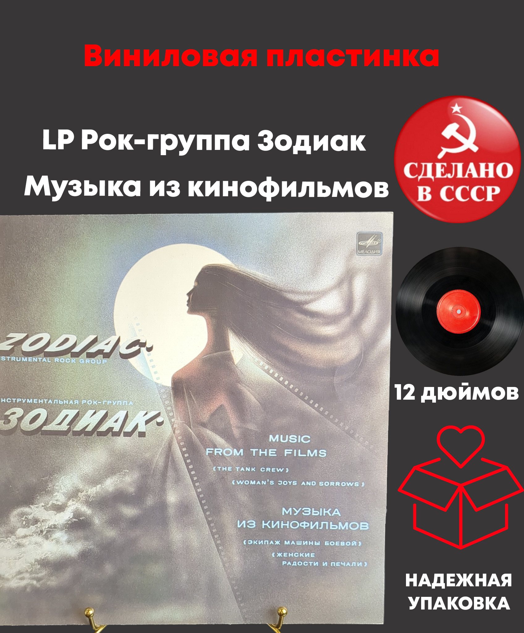 LP Рок-группа Зодиак - Музыка из кинофильмов, "Экипаж машины боевой", "Женские радости и печали". Инструментальная музыка. Виниловая пластинка 12 дюймов. Мелодия СССР. 1985 год. Конверт EX/Диск EX