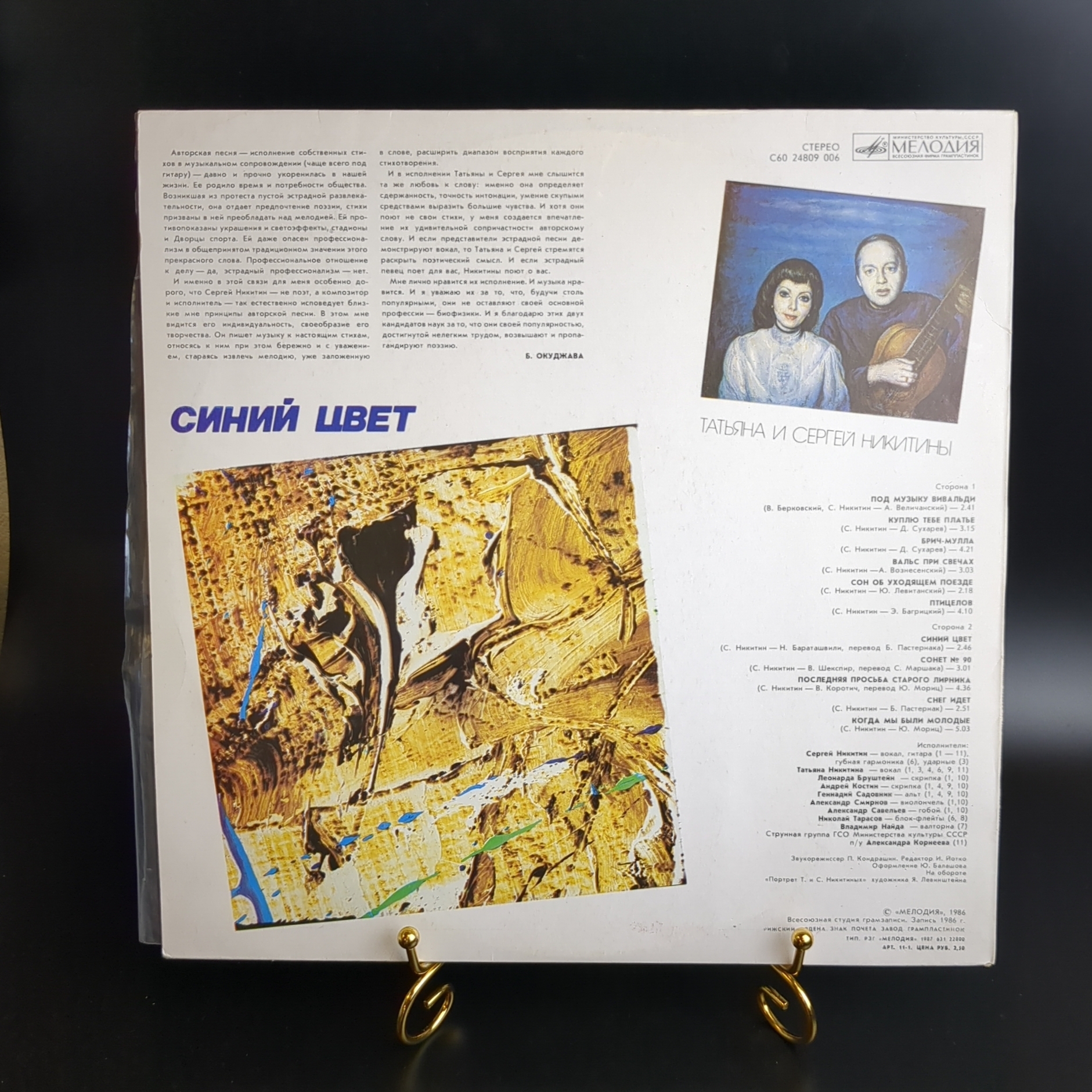 LP Татьяна и Сергей Никитины - Синий цвет. Виниловая пластинка 12 дюймов. Мелодия СССР 1986 год. Конверт NM / Диск MINT