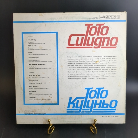 LP Тото Кутуньо - Итальянец / Только мы/ Одни /Моя женщина и др, виниловая пластинка 12 дюймов СССР Мелодия 1983 год. Лицензия Мюнхен. Конверт EX / Диск EX