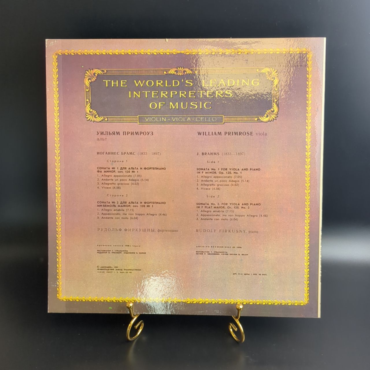 LP Уильям Примроуз - Альт - Из Сокровищницы Мирового Исполнительского Искусства. Виниловая пластинка 12 дюймов. Мелодия СССР 1982 год.