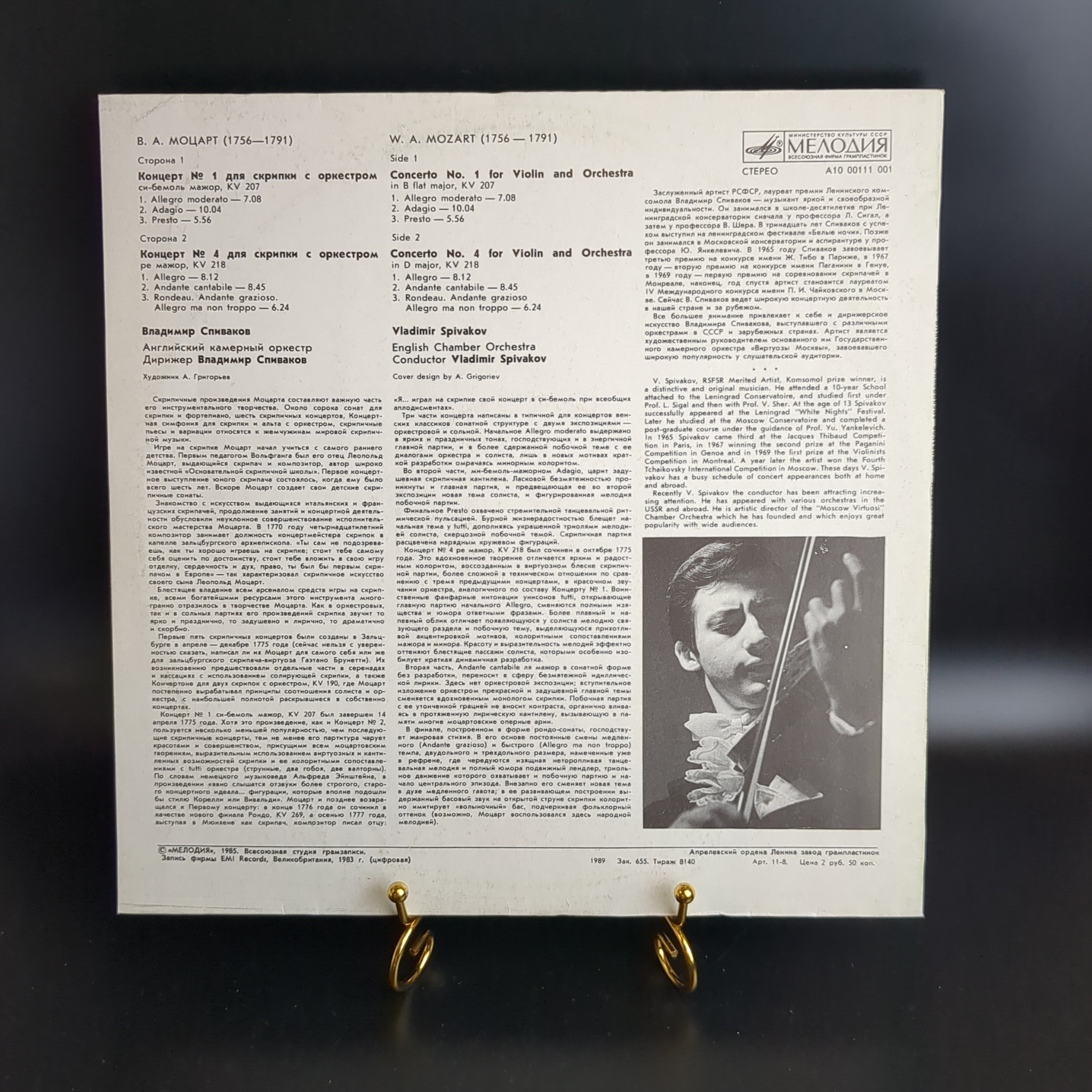 LP В. А. Моцарт. Концерты №1 и 4 для скрипки с оркестром. Владимир Спиваков. Английский камерный оркестр. Виниловая пластинка 12 дюймов. Мелодия СССР 1985 год.