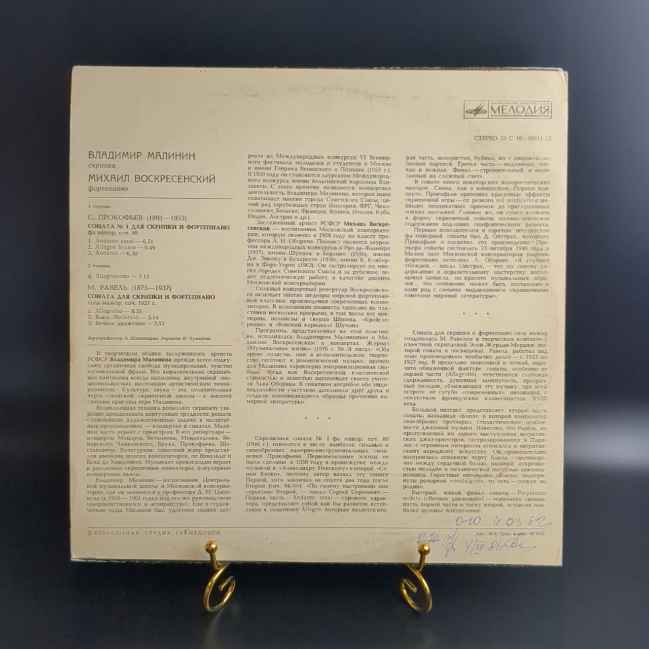 LP Владимир Малинин, Михаил Воскресенский - Соната №1 для скрипки и фортепиано. Виниловая пластинка 12 дюймов. Мелодия СССР