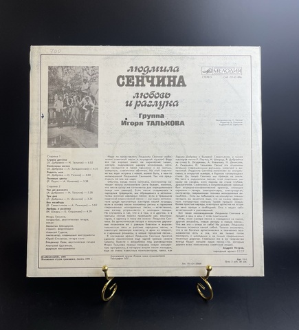 Людмила Сенчина - Любовь и разлука. Группа Игоря Талькова, виниловая пластинка 12 дюймов LP Мелодия СССР 1984 год