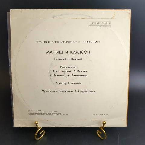 Малыш и Карлсон. Звуковое сопровождение к диафильму. Виниловая пластинка 10 дюймов. Мелодия СССР 1978 год.