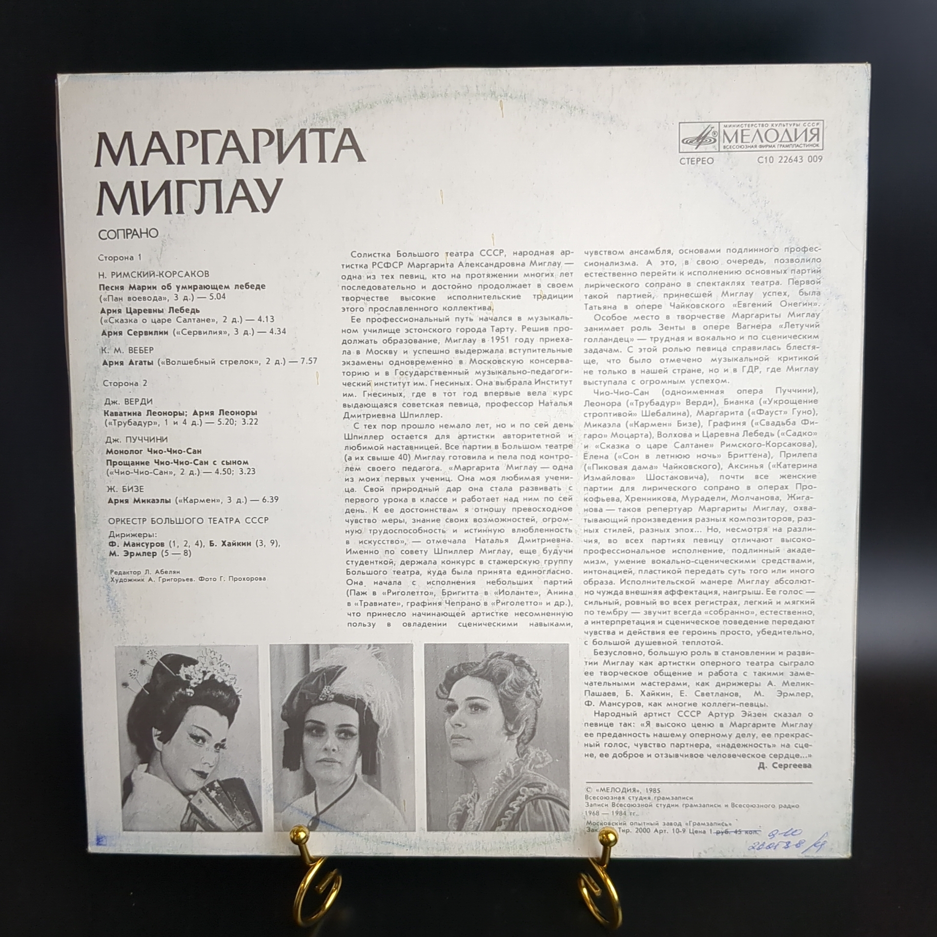 Маргарита Миглау виниловая пластинка 12 дюймов сопрано Арии, Из истории Большого театра СССР, LP классика, винтаж Мелодия СССР 1985 год. Классическая музыка на виниле. Конверт: EX Диск: EX
