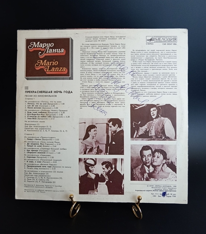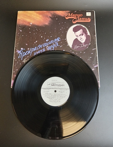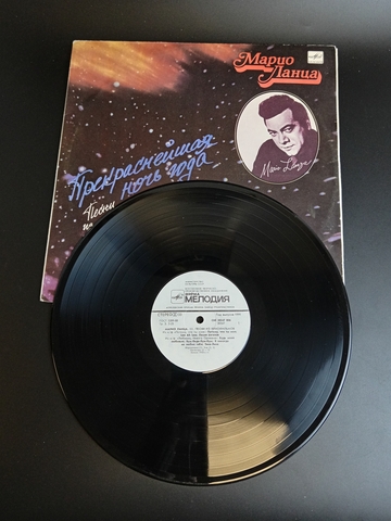 LP Марио Ланца - Прекраснейшая ночь года. Песни из кинофильмов. Виниловая пластинка 12 дюймов. Мелодия СССР 1991 год . Конверт EX / Диск EX