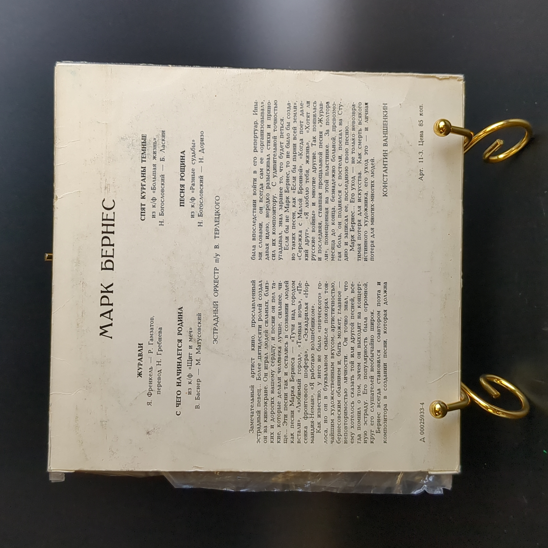 Марк Бернес - Журавли. Виниловая пластинка 7 дюймов. Мелодия СССР.