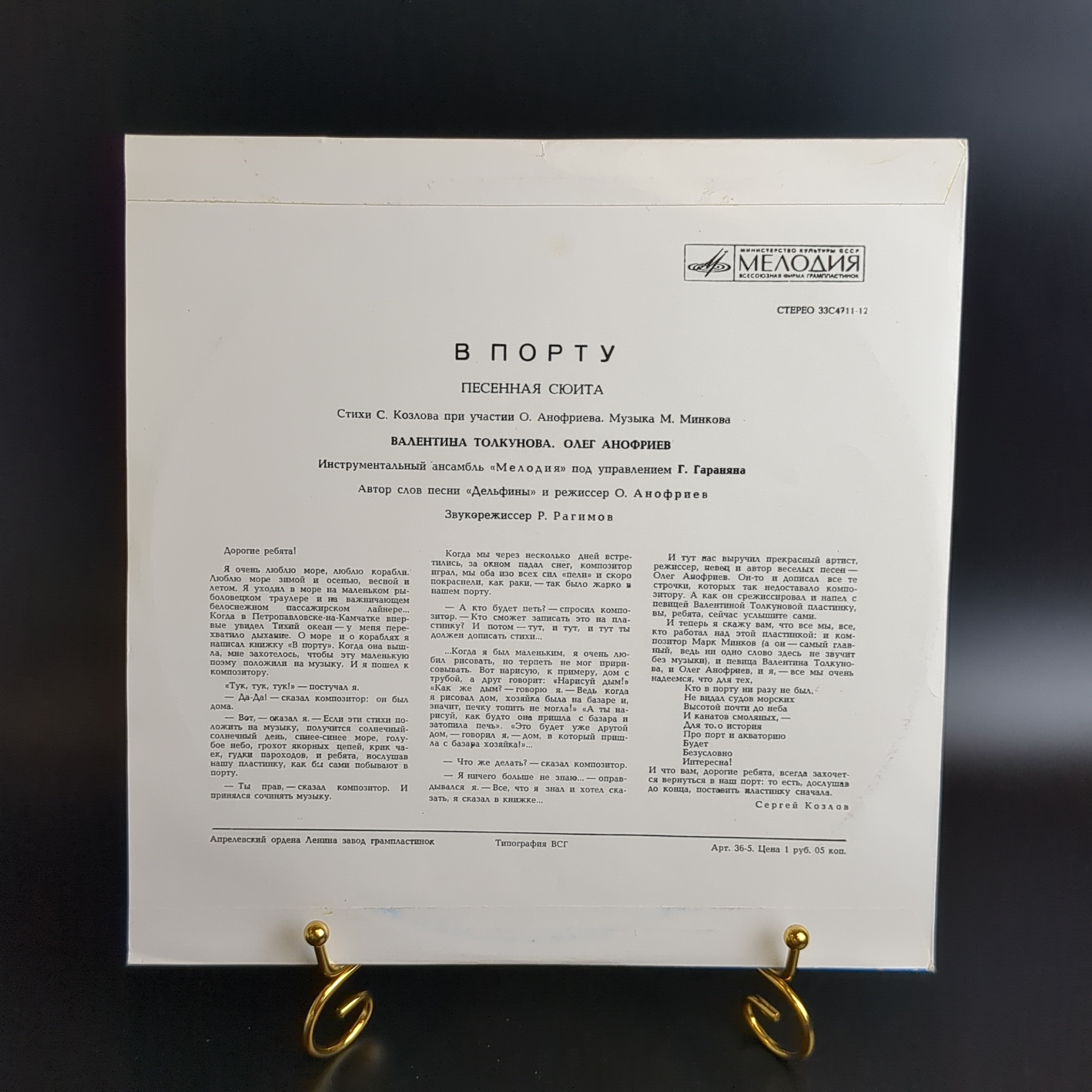 МАРК МИНКОВ - В ПОРТУ - ПЕСЕННАЯ СЮИТА - Виниловая пластинка 10 дюймов. Мелодия СССР