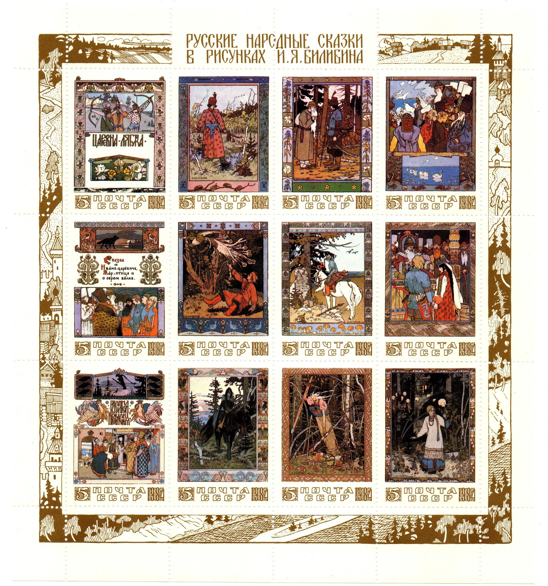 Марки. Блок Русские народные сказки в рисунках И. Я. Билибина XF