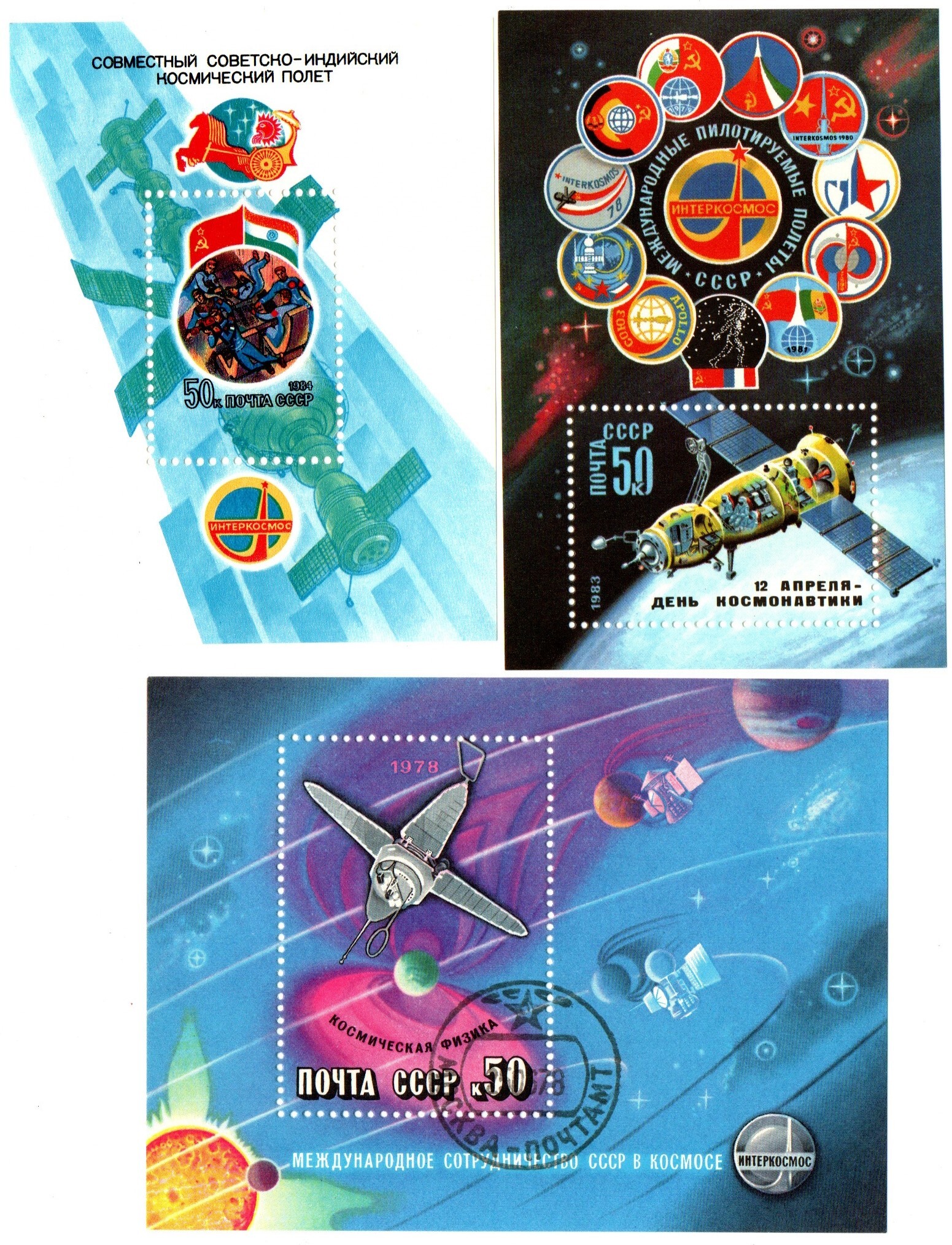 Марки. Космос Международное сотрудничество в космосе 3 шт. XF
