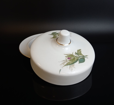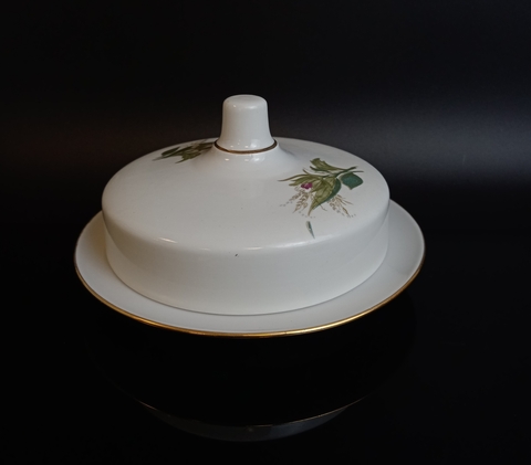 Масленка фарфоровая клеймо Дулево ФЗ, роспись, позолота, винтаж СССР 1987 год. Присутствуют следы использования - состояние на фото