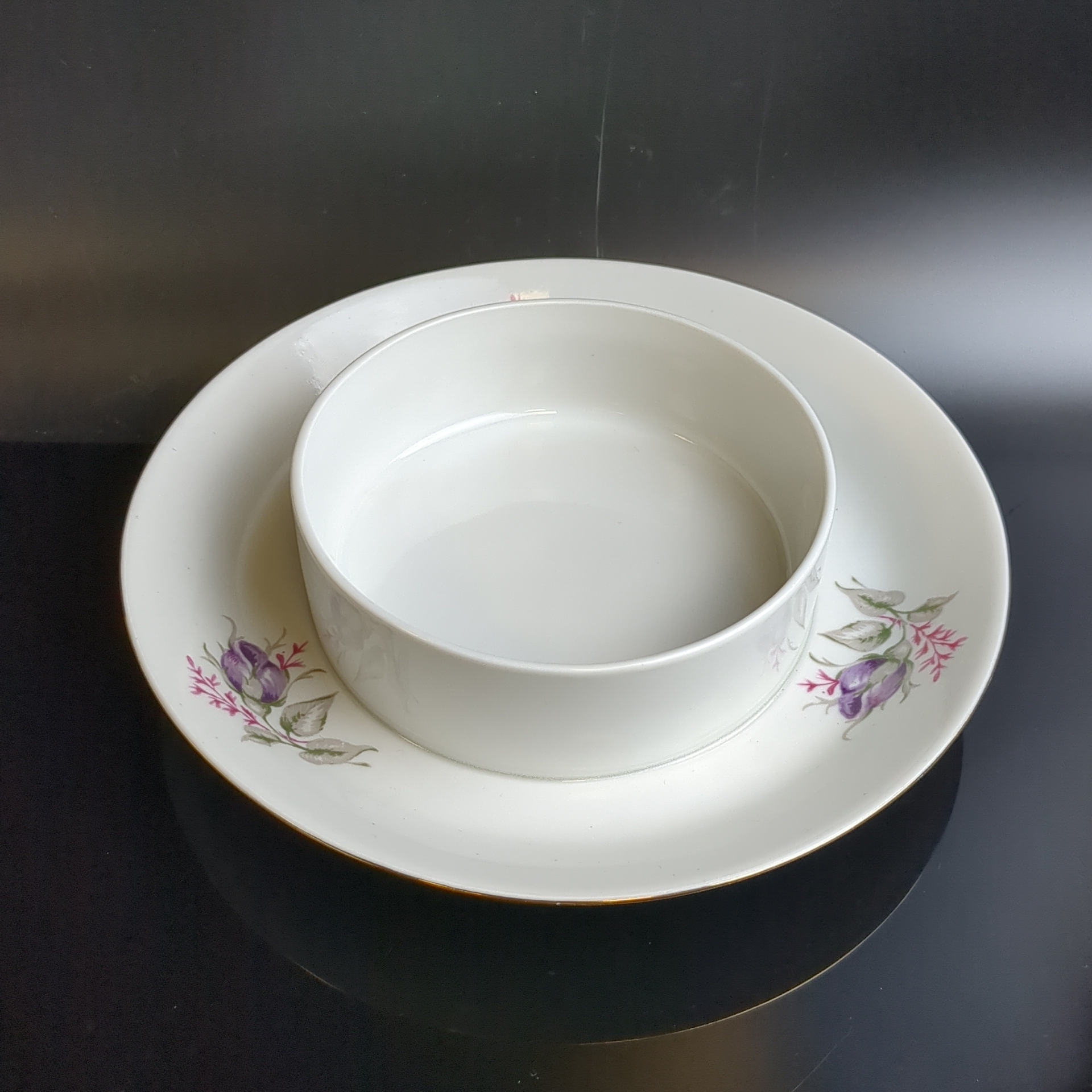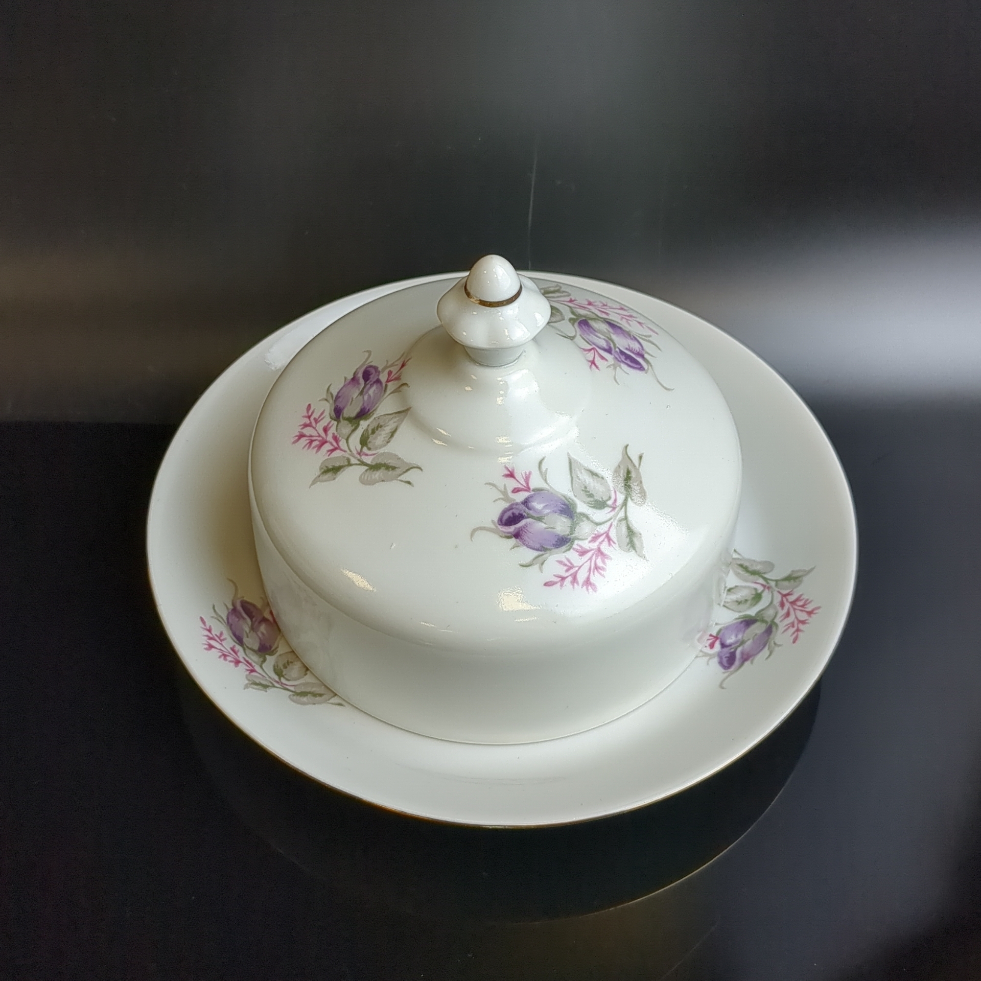 Маслёнка фарфоровая с изящными цветами Wloclawek porcelana, золочение, винтаж Польша, времён СССР 1967-1973 гг. Состояние на фото