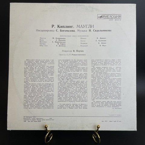 LP Маугли - Р. Киплинг. инсценировка сказка для детей, Мелодия 1974 год. Виниловая пластинка 12 дюймов. Детские сказки. Мелодия СССР 1974 год. Конверт EX- / Диск EX