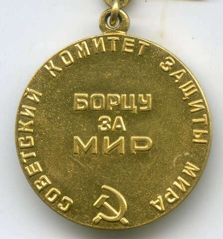 Медаль "Борцу за Мир". Советский комитет защиты мира. СССР. Бронза с позолотой.