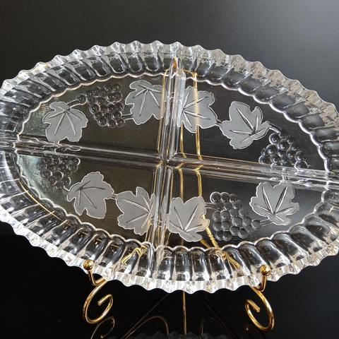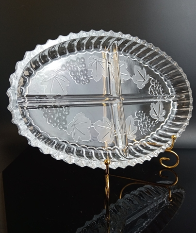 Менажница стекло декор рельеф Виноград, 4 раздела для сервировки, винтаж СССР 1970-1990 гг. Высота - 3.5 см, длина - 31 см. состояние на фото