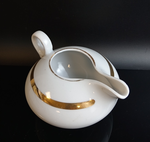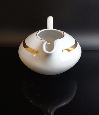 Молочник фарфоровый Дулево ФЗ, позолота, винтаж СССР 1968-1991 гг. Высота - 8.5 см. Присутствуют следы использования - состояние на фото
