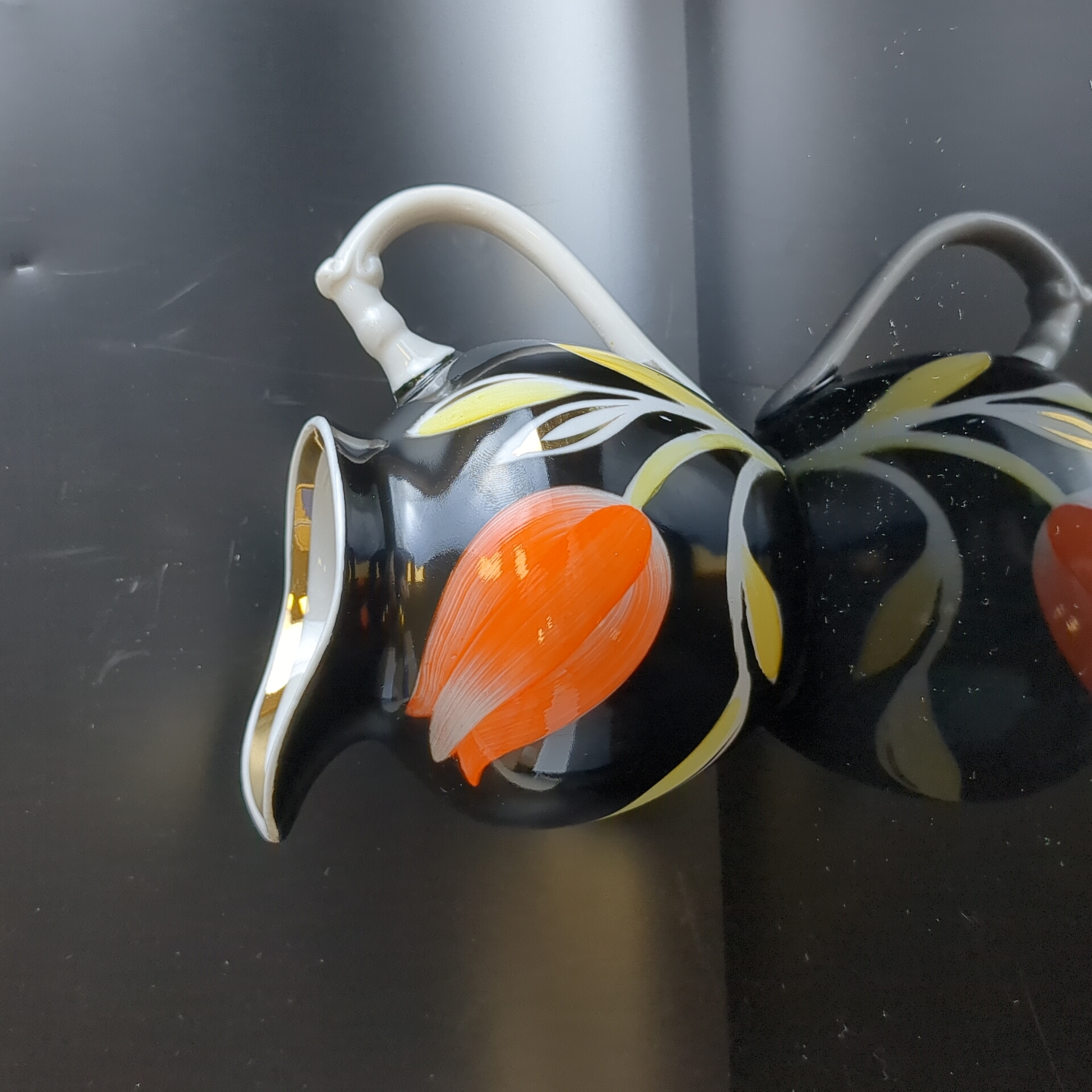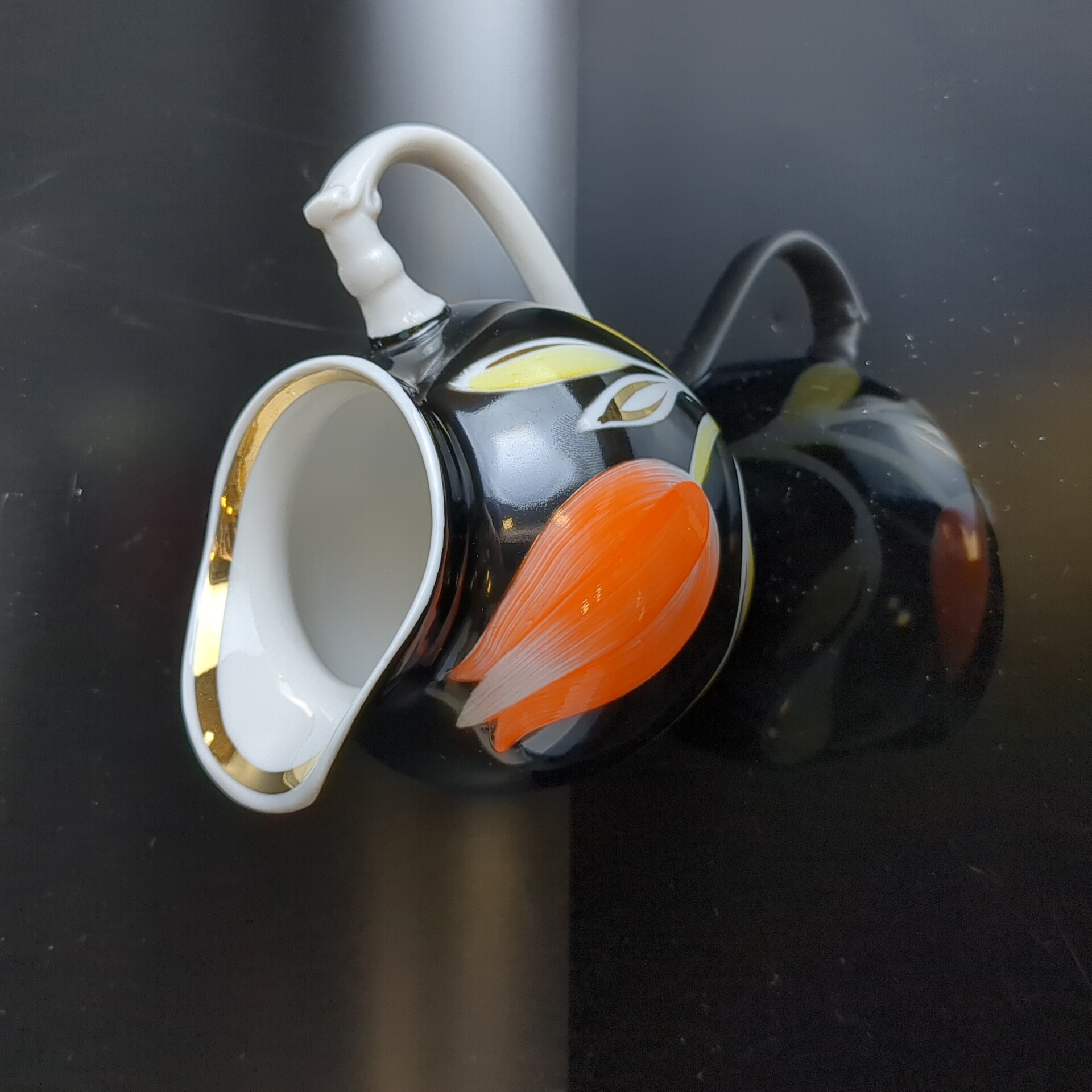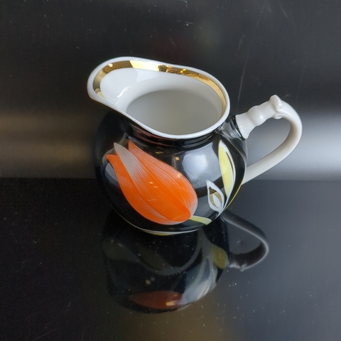 Молочник фарфоровый "Тюльпан" роспись, позолота, глазурь, Дулево ФЗ, винтаж СССР 1960-1990 год. Высота - 9 см.