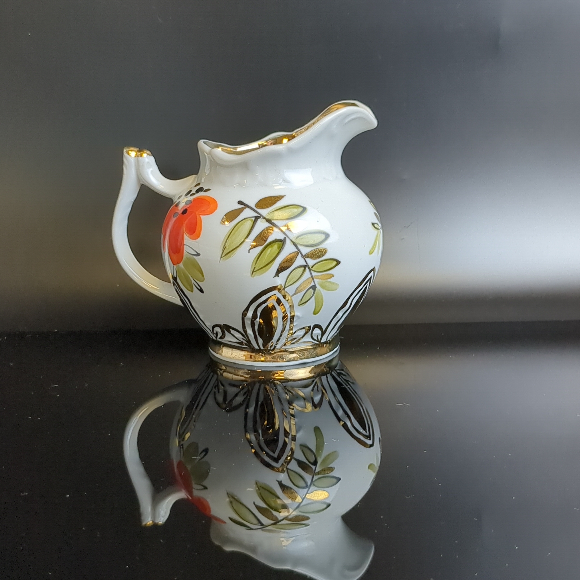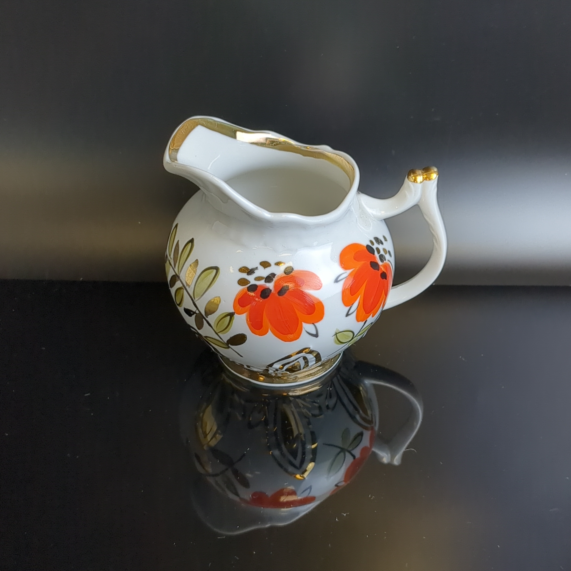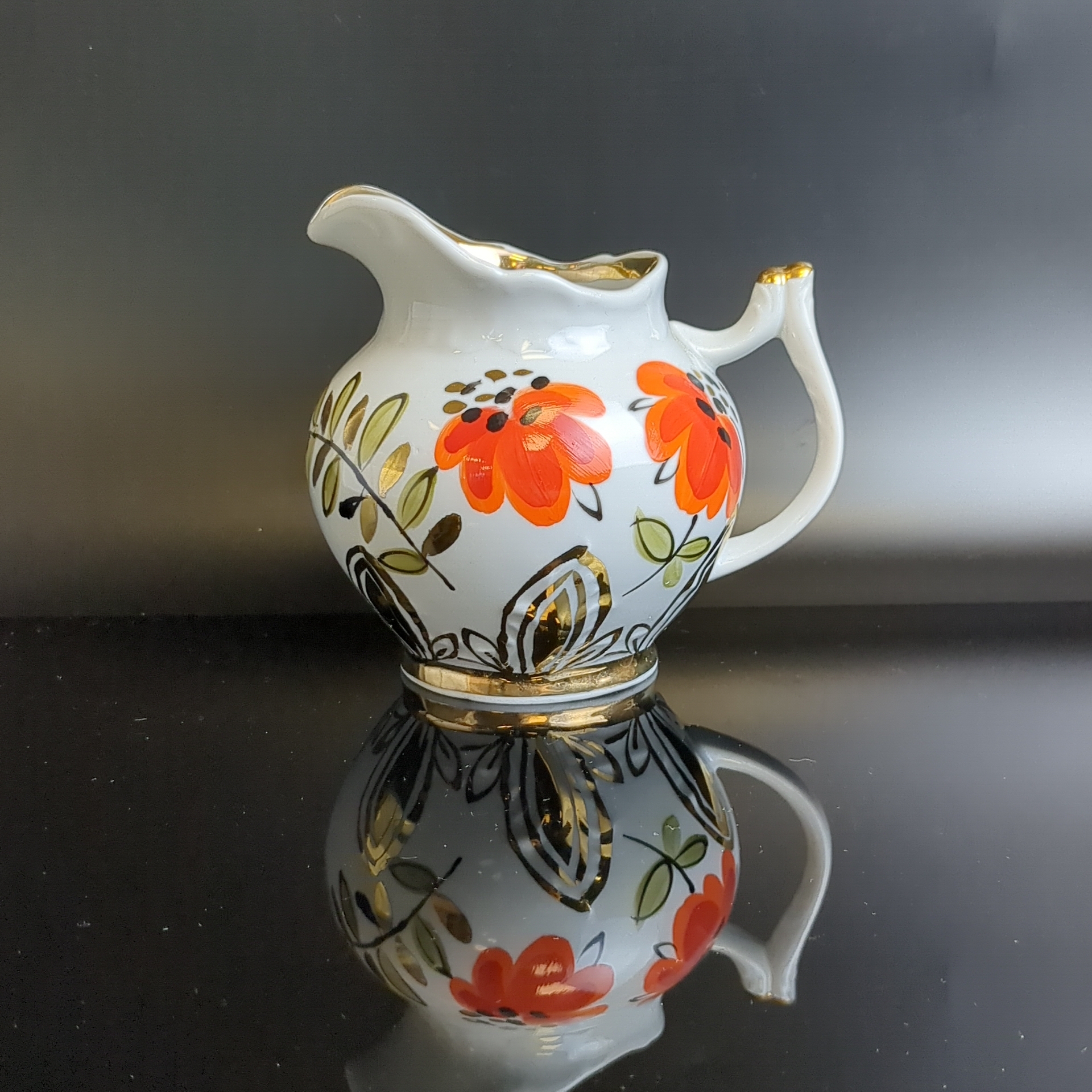Молочник "Маки", клеймо Вербилки (Дмитровский ф-з), ручная роспись, позолота, винтаж СССР 1965-1991 гг.
