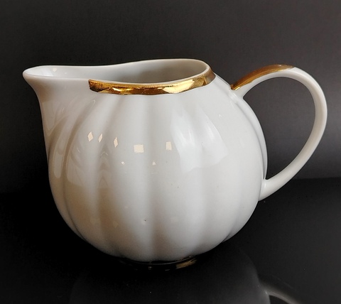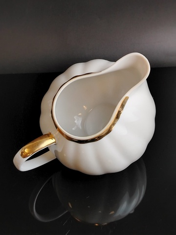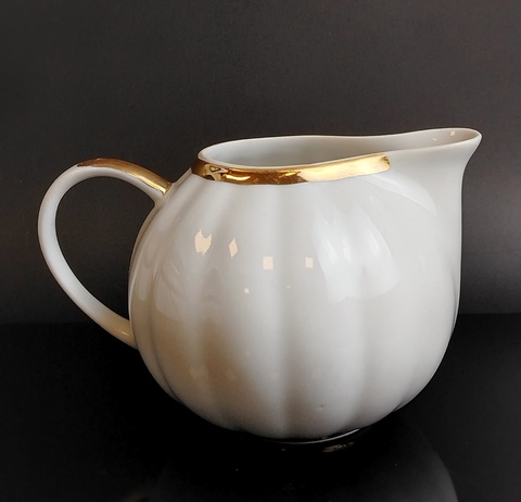 Молочник, сливочник фарфоровый Дулево ФЗ, позолота, винтаж времён СССР 1968-1991 гг. Высота - 10 см. Присутствуют следы использования - состояние на фото