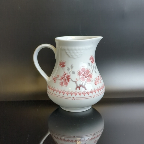 Молочник, сливочник фарфоровый Кольдиц, Colditz, GDR, роспись цветы, высота- 10.5 см, винтаж времён СССР.