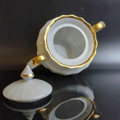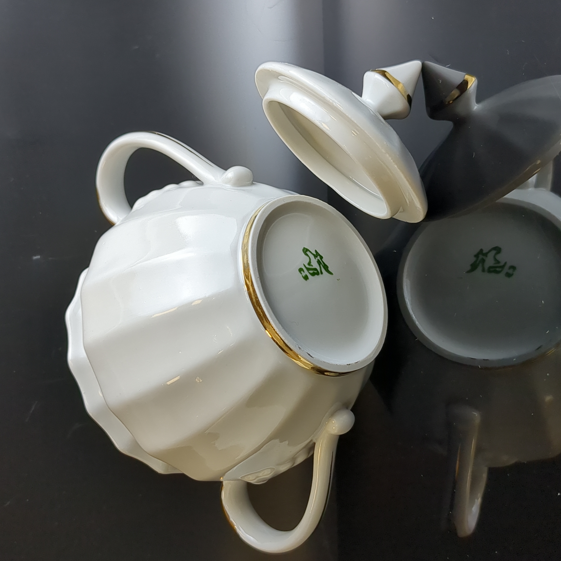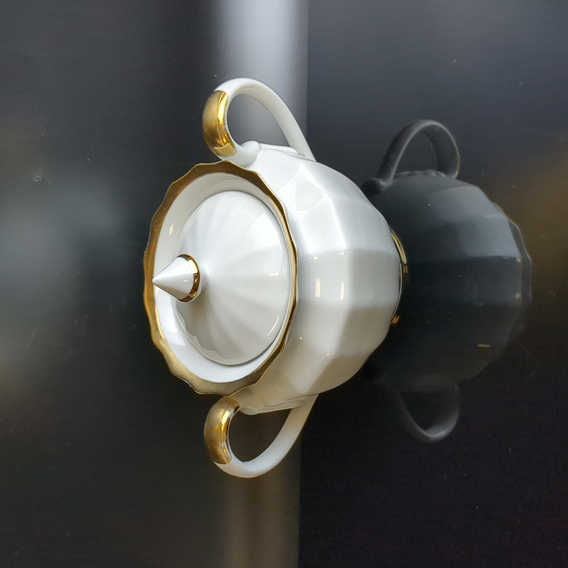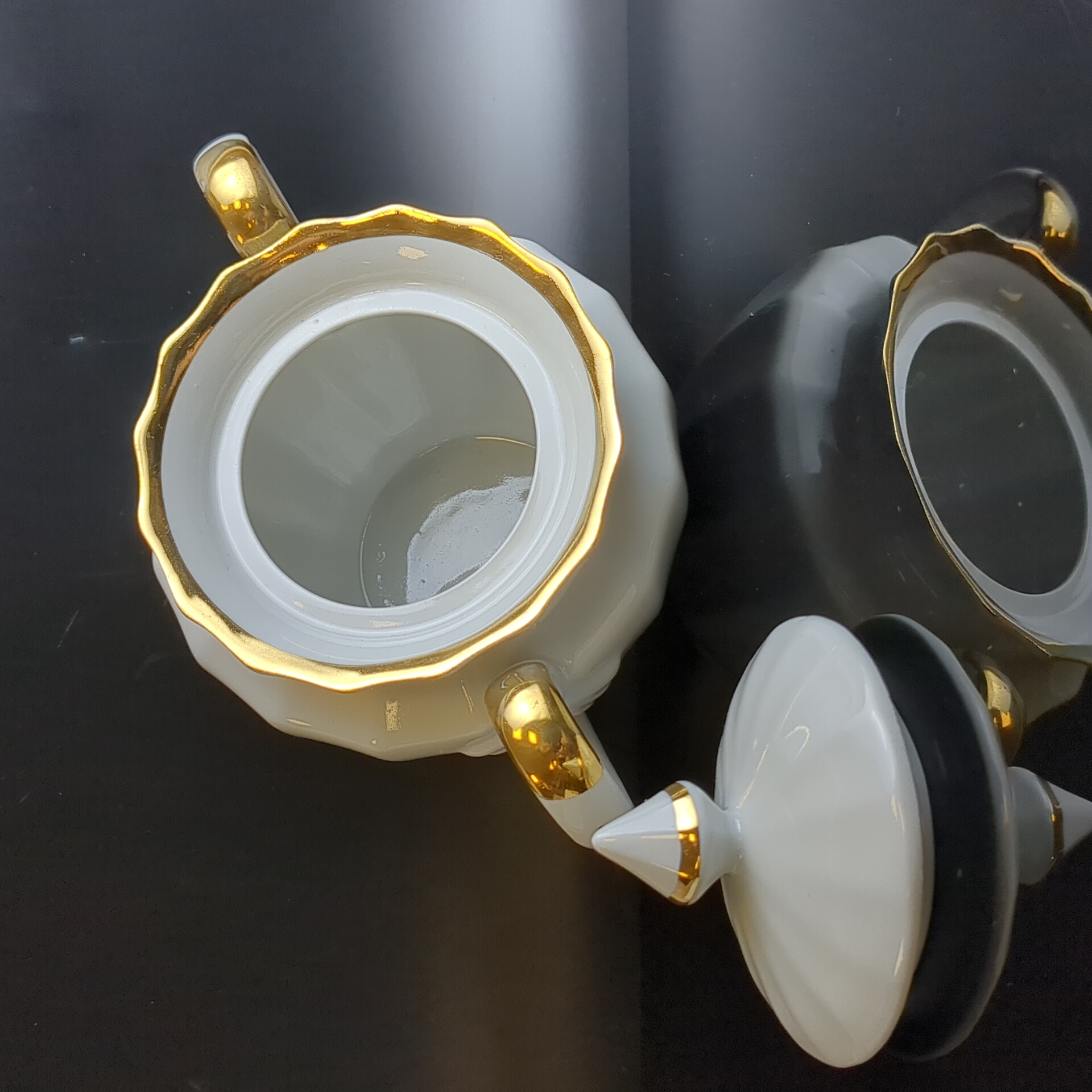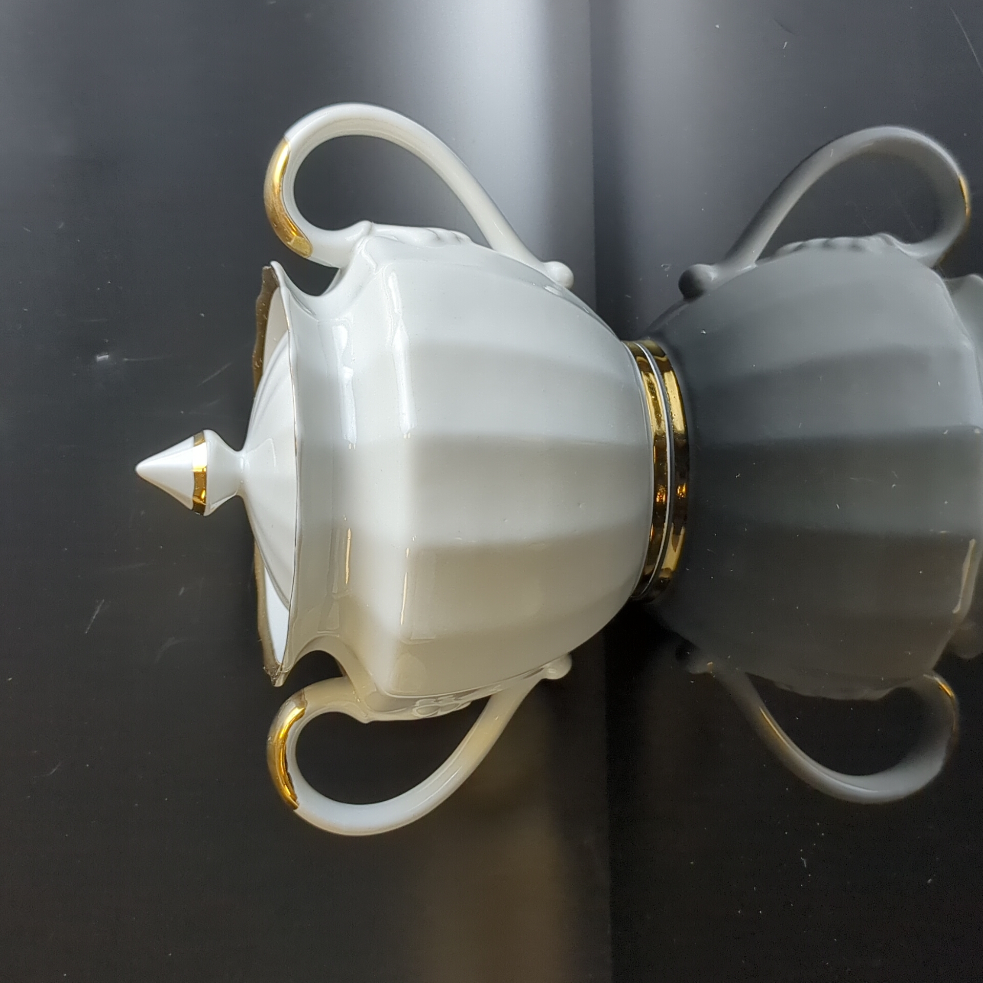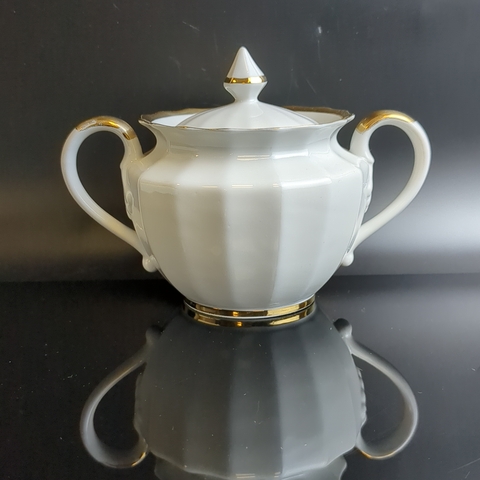 Сахарница "Золотая лента" фарфоровая, Дмитровский завод Вербилки, позолота, винтаж СССР 1965-1991 гг. Высота - 11.5 см. Состояние на фото