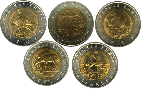 Центральный банк Российской Федерации продолжил выпуск новых монет серии "Красная книга", в 1994 году в набор вошли монеты:
