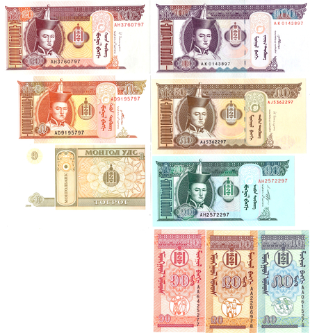| Номинал: | 1,5,10,20,50,100 тугрек. 10,20,50 менге |