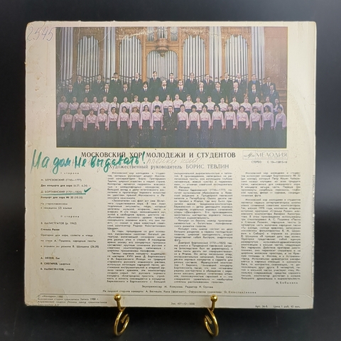 Московский хор молодежи и студентов виниловая пластинка 12 дюймов, худ.рук. и дирижер Борис Тевлин, LP, винтаж СССР Мелодия 1980 год. Присутствуют следы использования - состояние на фото