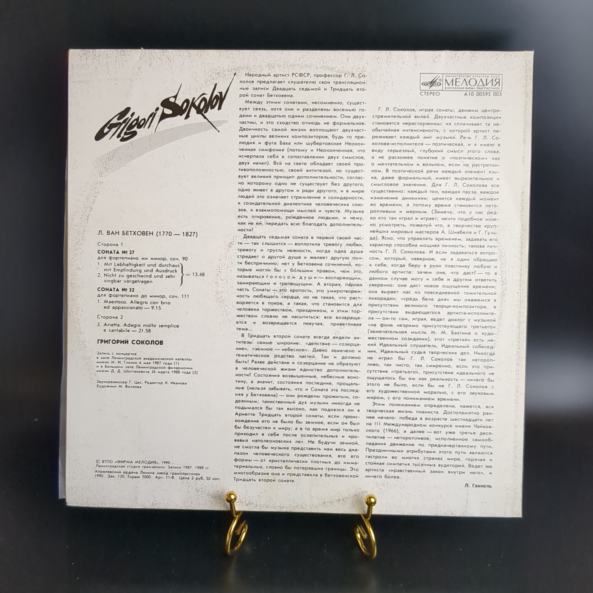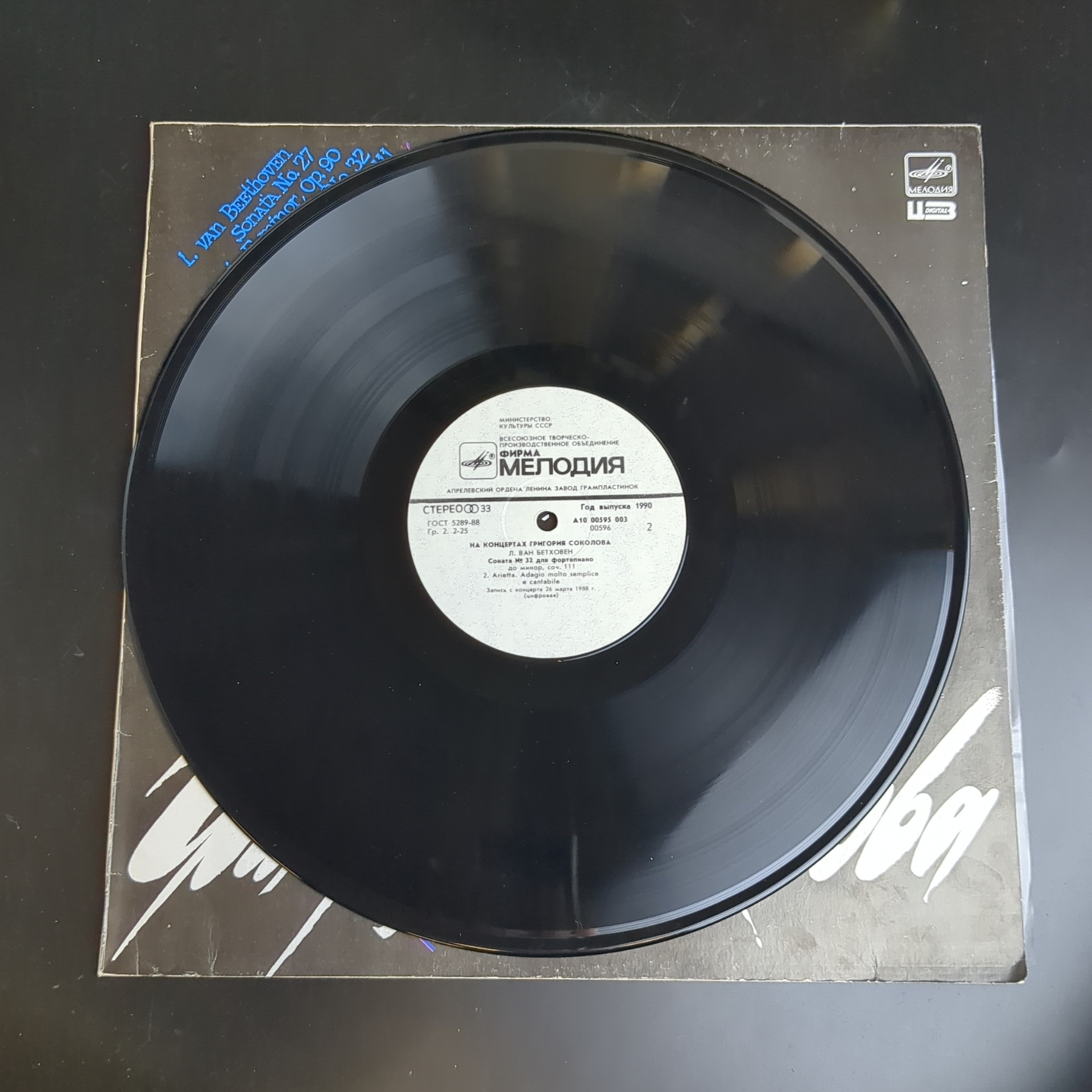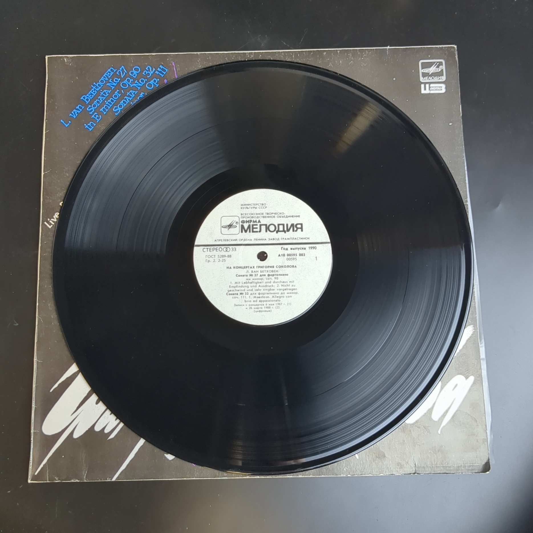 На концертах Григория Соколова виниловая пластинка 12 дюймов Л. Ван Бетховен соната №27 ми минор,соч.90/соната №32 до минор,соч. 111, LP классика, винтаж СССР Мелодия 1990 год. Классическая музыка на виниле. Конверт: EX Диск: EX