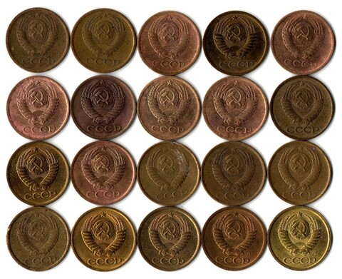 Набор 1 копейка СССР (20 монет без повторов) 1968, 72-74, 76-81, 83-91 м,л. №1