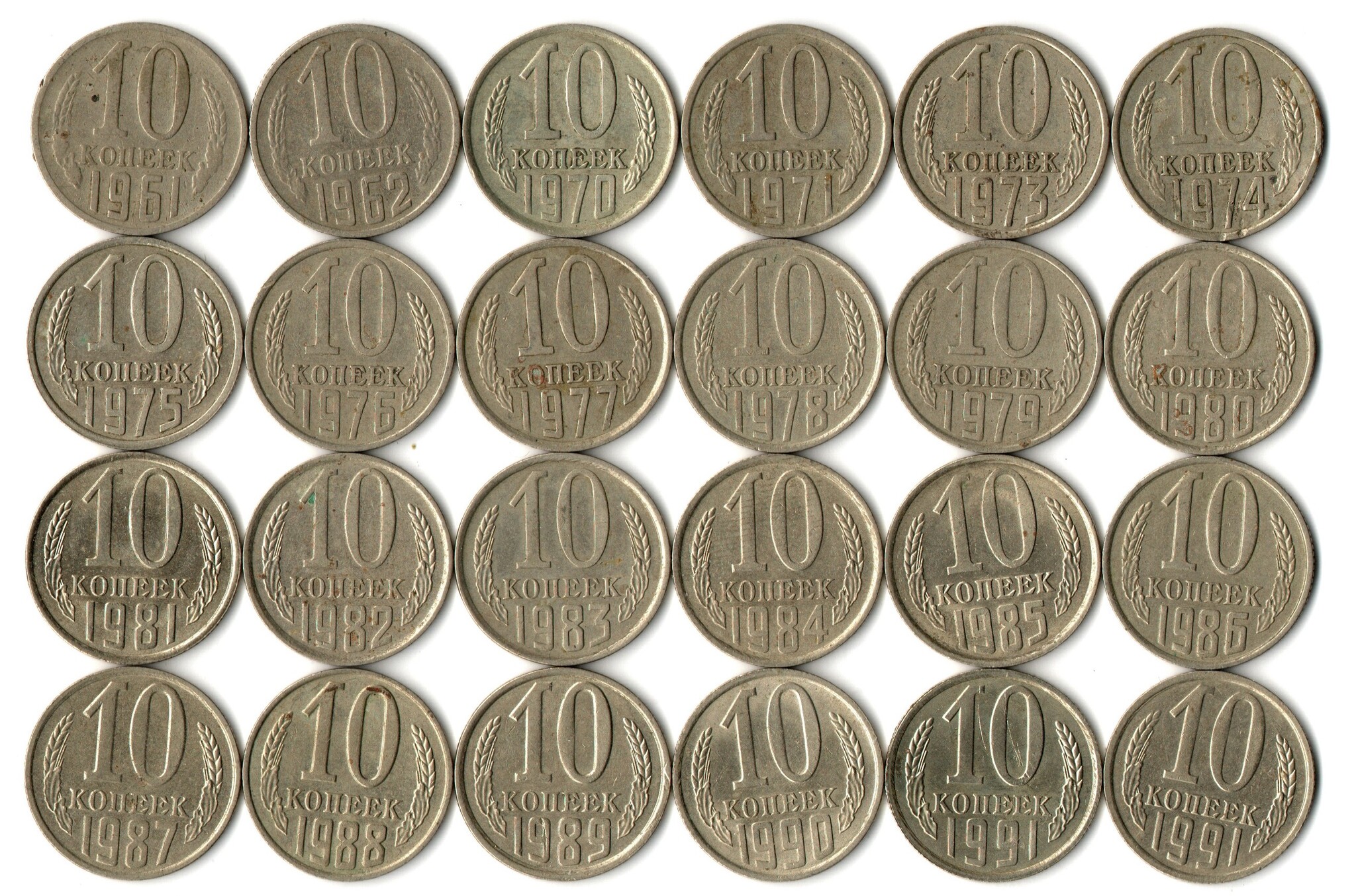 Набор 10 копеек СССР (24 монеты) 1961,62, 70, 71, 73-91 Л/М. VF-XF
