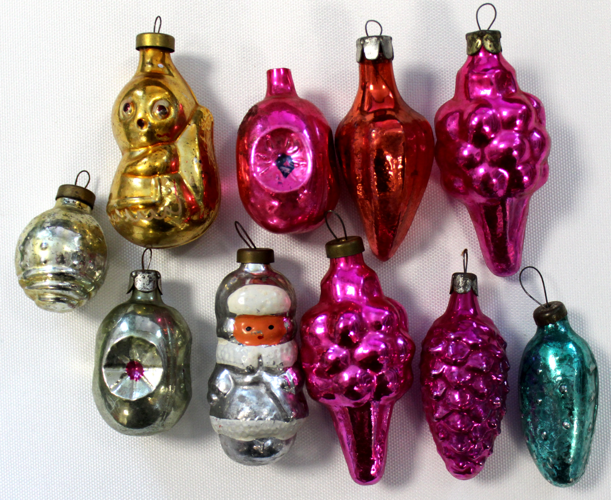 Оригинальные советские ёлочные игрушки. Набор из 10 штук.