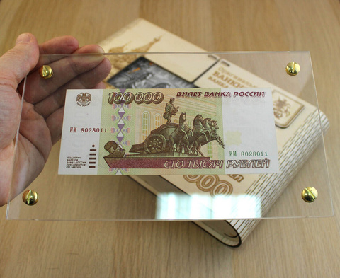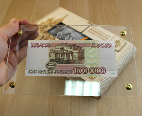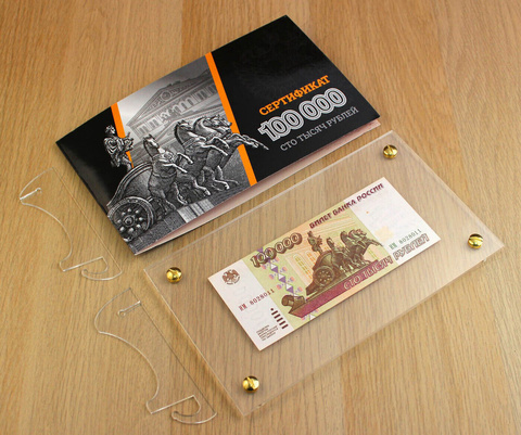 Купюра в 100 000 рублей появилась в 1995 году и выведена из оборота уже в 1998 году, после чего основная масса утилизировалась. До наших дней сохранилось не так много экземпляров, что делает их особо ценными для коллекционеров и ценителей. Кроме того, презентуя такой подарок или приобретая его себе, Вы можете по-настоящему прикоснуться к истории.