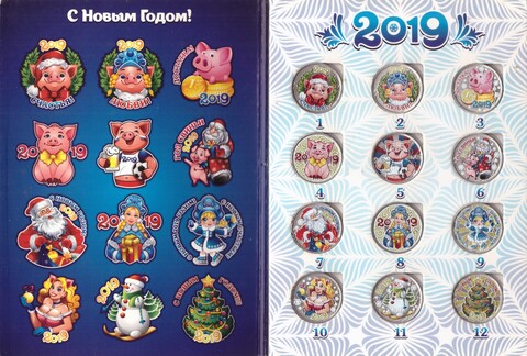 Набор 12 сувенирных монет с Новым 2019 годом Год свиньи в альбоме
