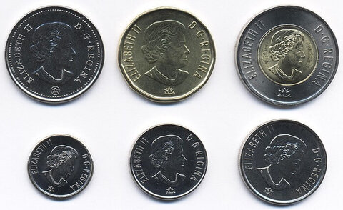 Набор из 6 монет (5 центов, 10 центов, 25 центов, 50 центов, 1 доллар, 2 доллара)