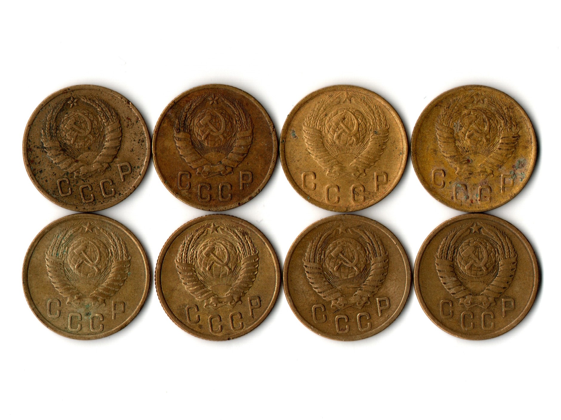 Набор 2 копейки ( 8 монет): 1938, 46, 48, 49, 52, 55, 56, 57 гг. СССР. Ранние советы