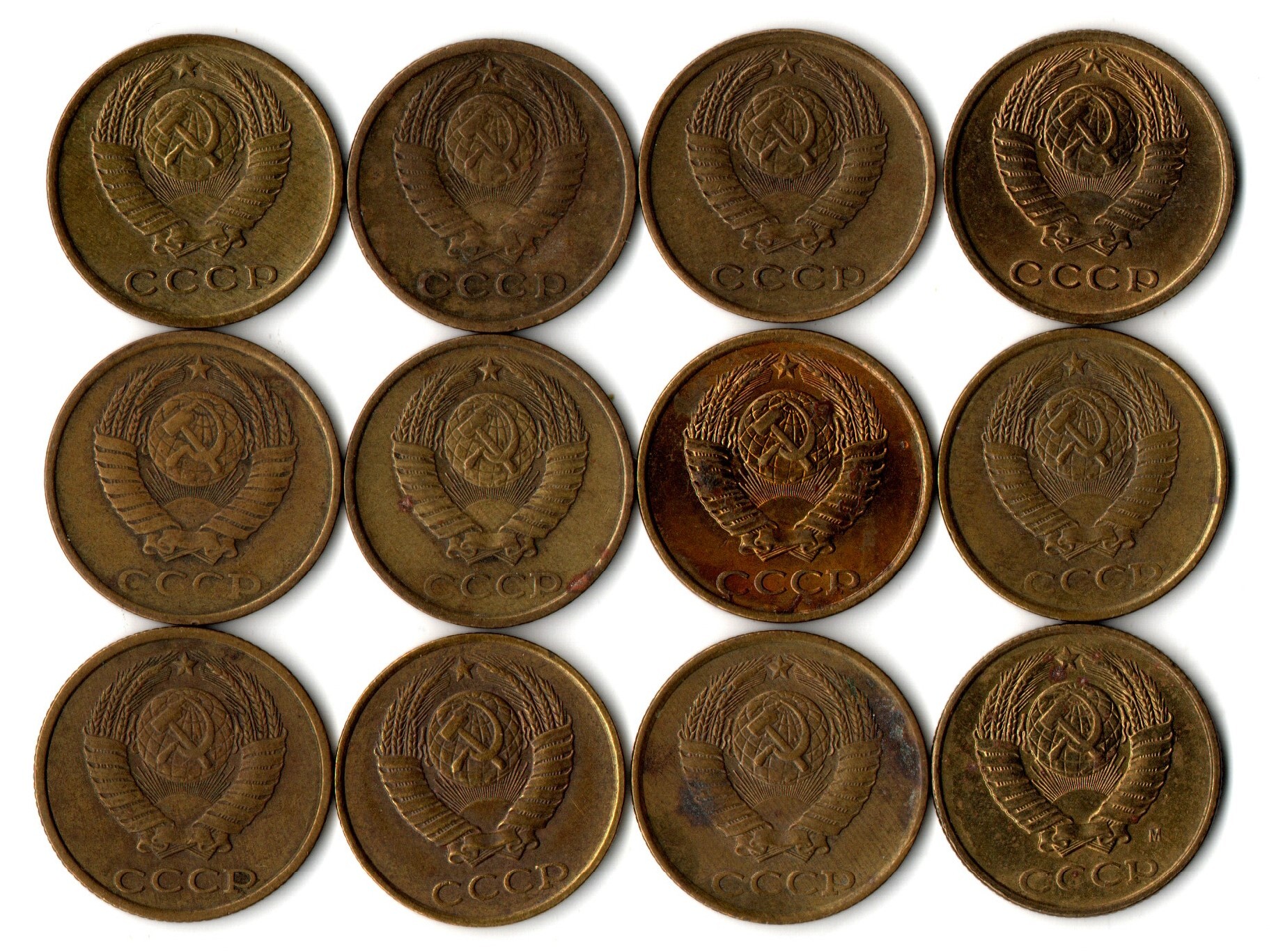 Набор 2 копейки СССР (12 монет) 1971, 73, 76, 78, 83-89, 91М гг.
