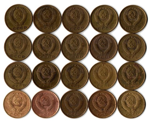 Набор 2 копейки СССР (20 монет) 1963, 68, 70-74, 76, 78-80, 83-91М гг.