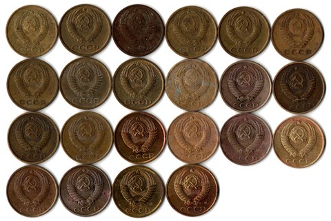 Набор 2 копейки СССР (22 шт без повторов) 1961, 68-74, 78, 80-91 м,л