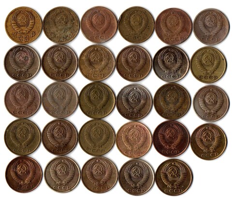 Набор 2 копейки СССР (29 шт без повторов) 1938, 57, 61-63, 68-76, 78-91 м,л