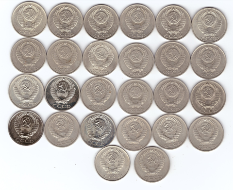 Набор 26 монет номиналом 50 копеек 1961,1964-1966,1968,1969,1972-1974,1976-1991м и л