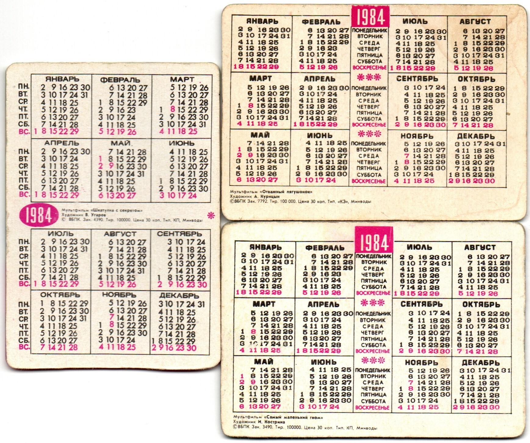 Набор №3 из 3 стерео Календариков. Мультфильмы СССР 1984 год