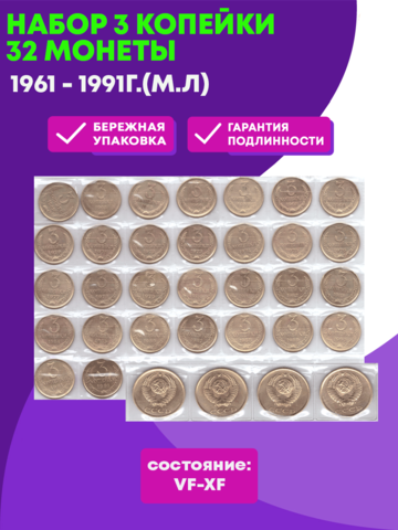 Набор 3 копейки 1961 - 1991Г. М/Л (32 монеты) VF- XF(2)