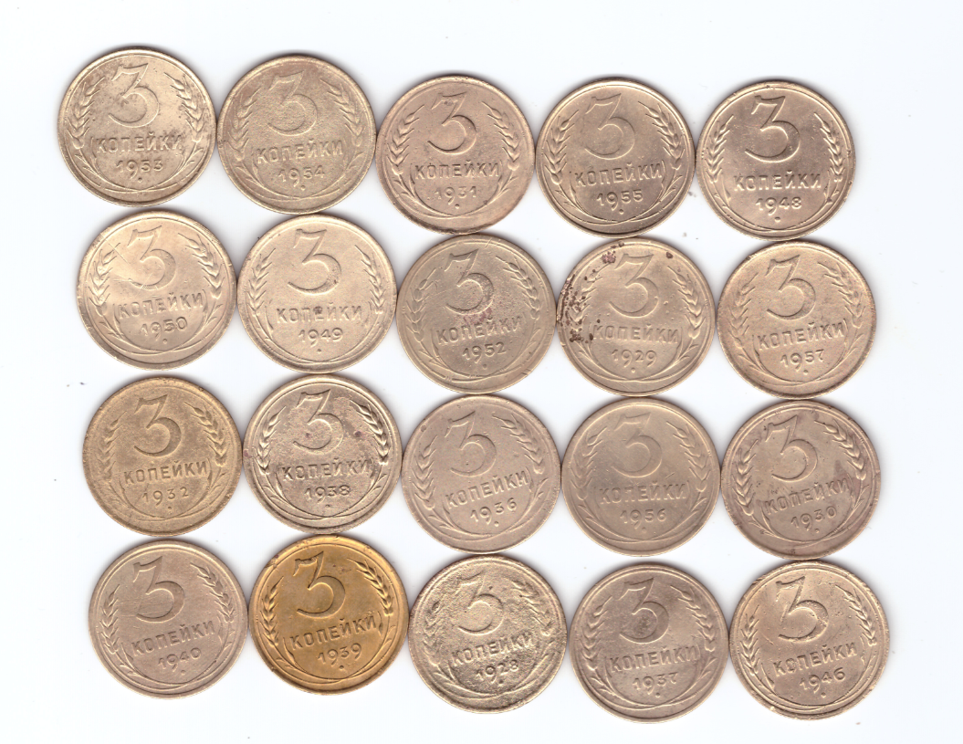 Набор 3 копейки (20 шт)1928-32,36-40,46,48-50,52-57(2) VF+
